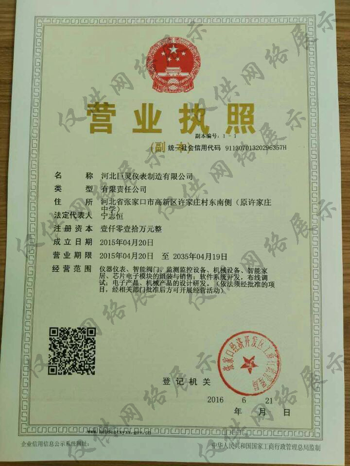 河北巨靈儀表制造有限公司位于冬奧會城市張家口高新區,公司始創于2008年,公司從事研發、生產、銷售、方案提供服務多位一體的企業,主要生產水電氣熱計量類產品,物聯網遠傳產品,供暖節能配套產品以及提供整體改造方案,公司資質齊全,滿足各類招標。